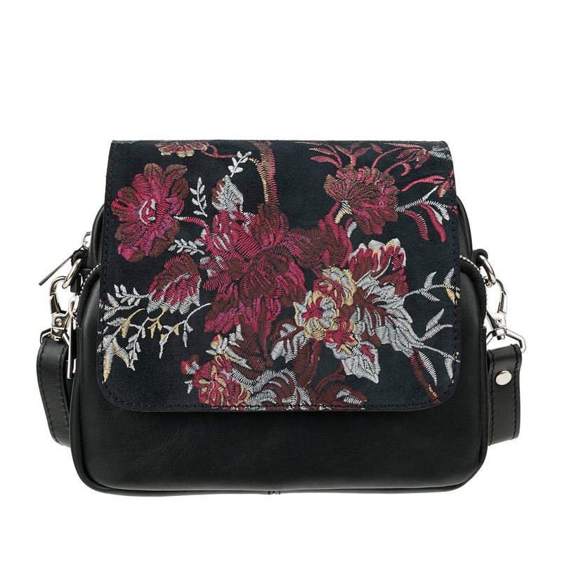 Listonoszka z nubukową klapką o kwiatowym wzorze – unikalny design