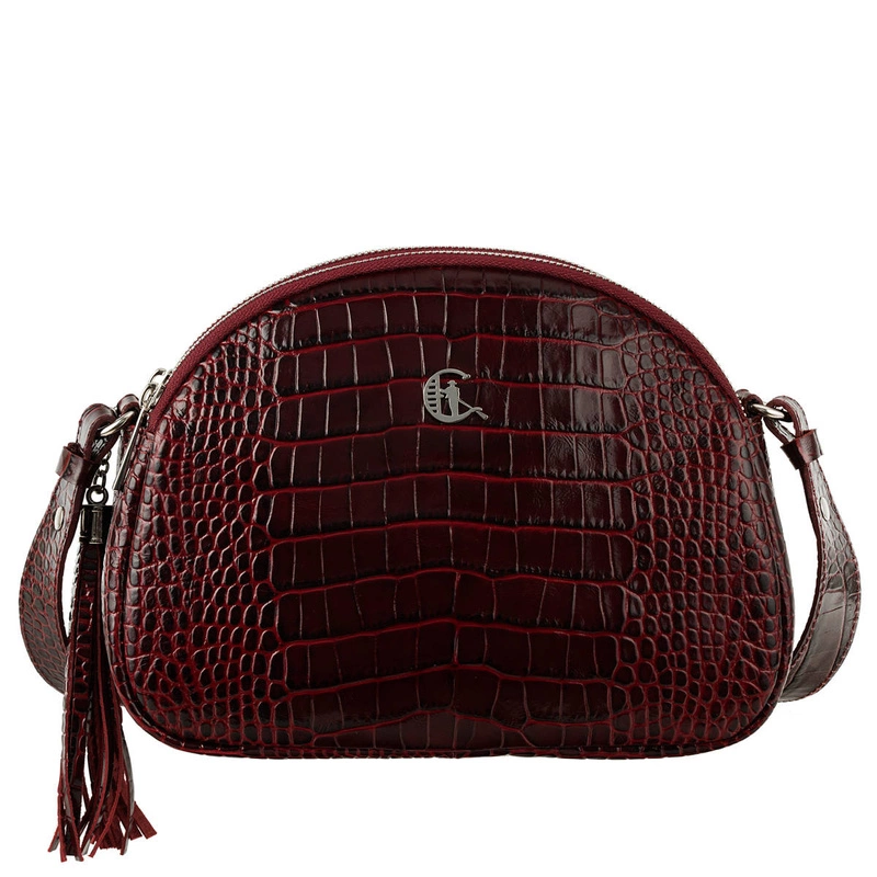 - Bordowa torebka Canaletto wykonana z naturalnej skóry tłoczonej na wzór krokodyla. Trzy komory, regulowany pasek i eleganckie detale. Polski produkt najwyższej jakości!