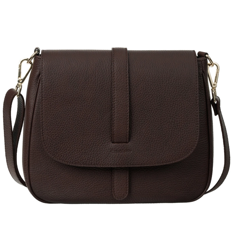 - Unikalny detal – dekoracyjny pasek biegnący przez klapkę, który nadaje torebce wyjątkowego charakteru i stylu.