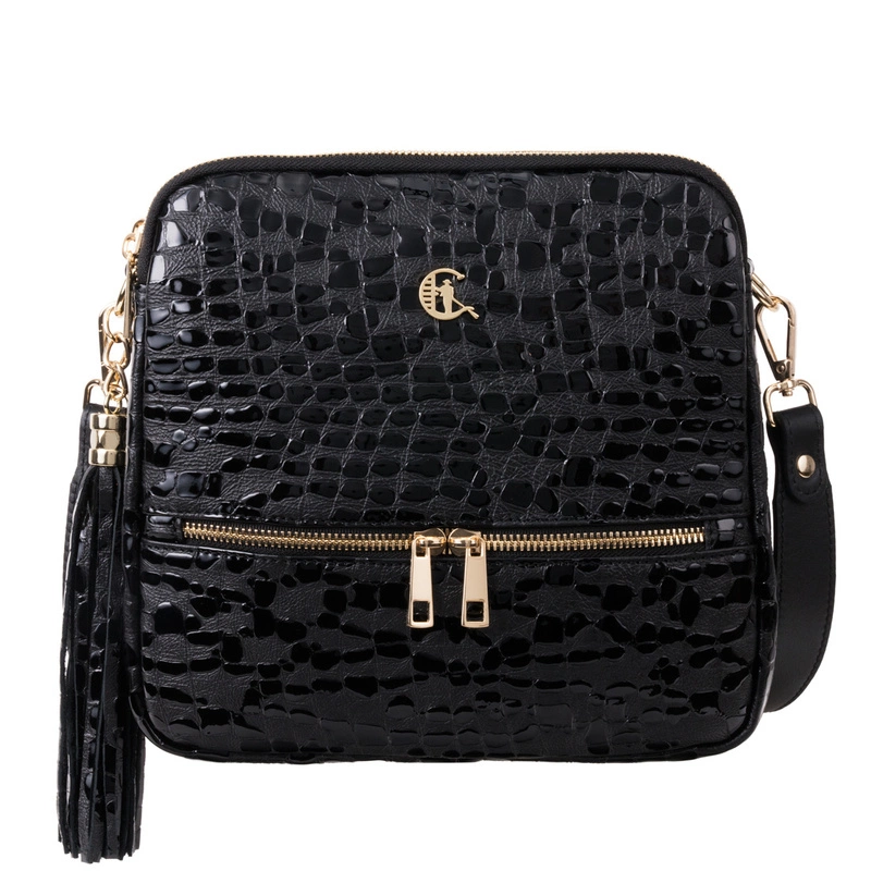- Stylowa torebka listonoszka Canaletto ze skóry naturalnej o wzorze kropli. Posiada ozdobny suwak, frędzel, złote okucia i regulowany pasek. Trzy komory zapewniają wygodę i funkcjonalność. Ręcznie wykonana w Polsce z dbałością o każdy detal!
