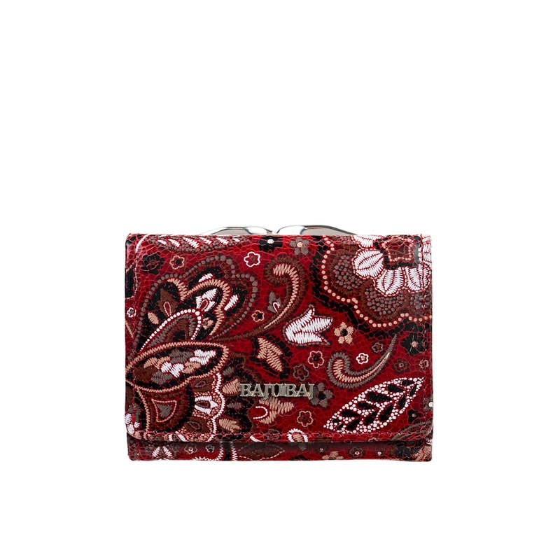 - Stylowy czerwony portfel damski BajuBaj z naturalnej kolorowej skóry. Ponad osiem przegródek na karty, kieszeń na monety z klasycznym zapięciem, elegancki design. Polski produkt najwyższej jakości!