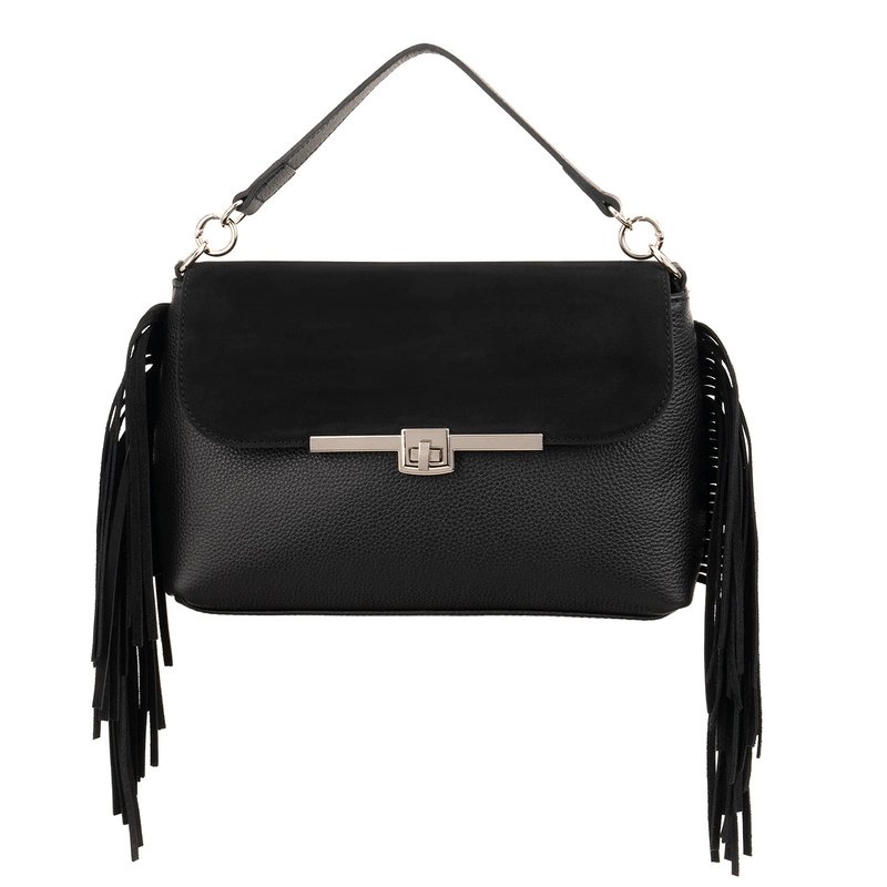 Średniej wielkości torebka Canaletto ze skóry naturalnej z welurową klapką i ozdobnymi frędzlami TD853F