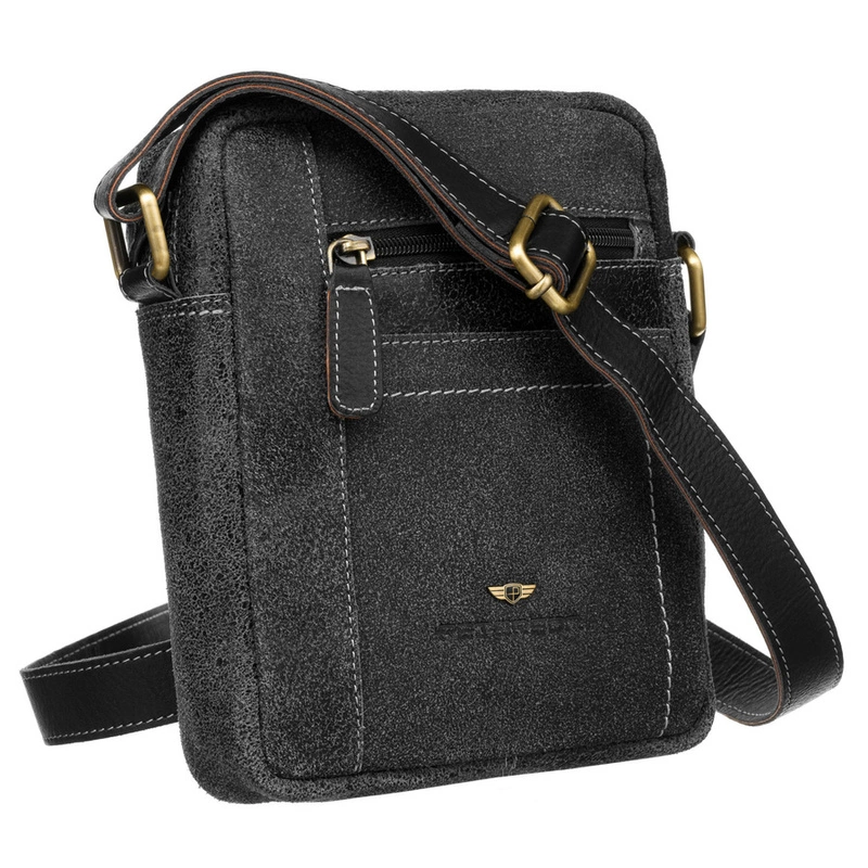 Praktyczna, czarna listonoszka męska ze skóry naturalnej zamykana na suwak - Peterson