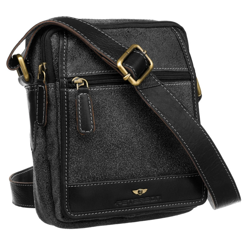 Klasyczna, czarna listonoszka męska ze skóry naturalnej zawieszona na regulowanym pasku - Peterson
