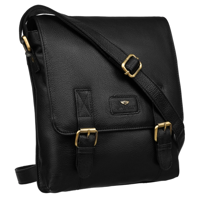 Miejska listonoszka męska ze skóry naturalnej w czarnym kolorze - Peterson