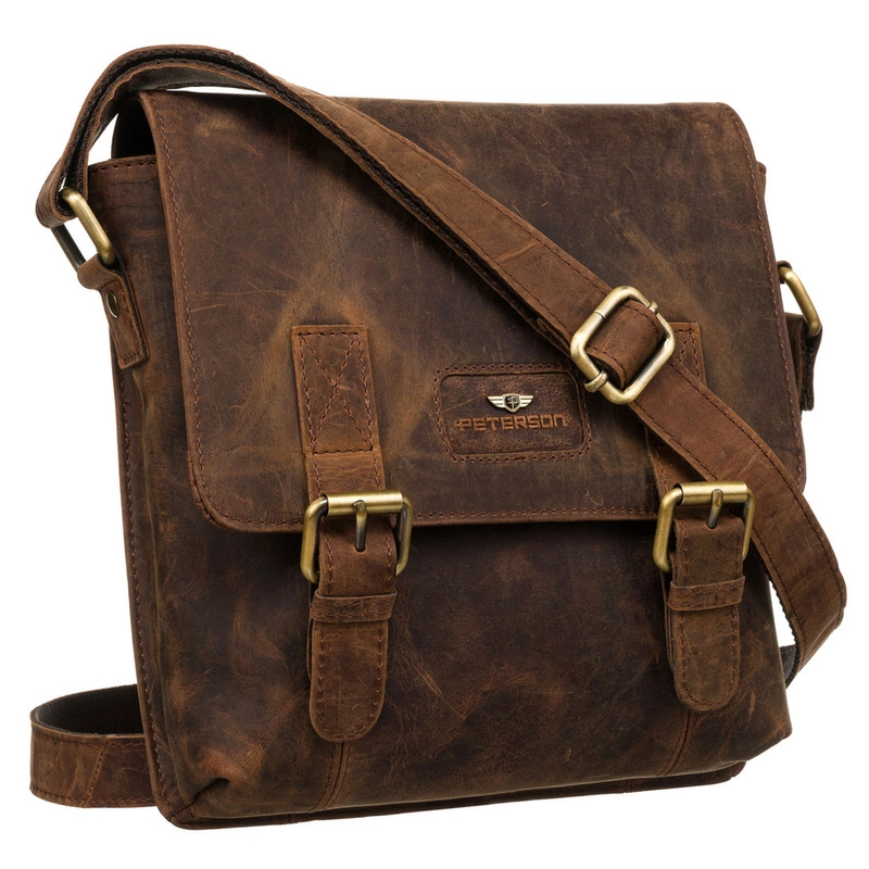 Klasyczna listonoszka męska ze skóry naturalnej w brązowym kolorze - Peterson