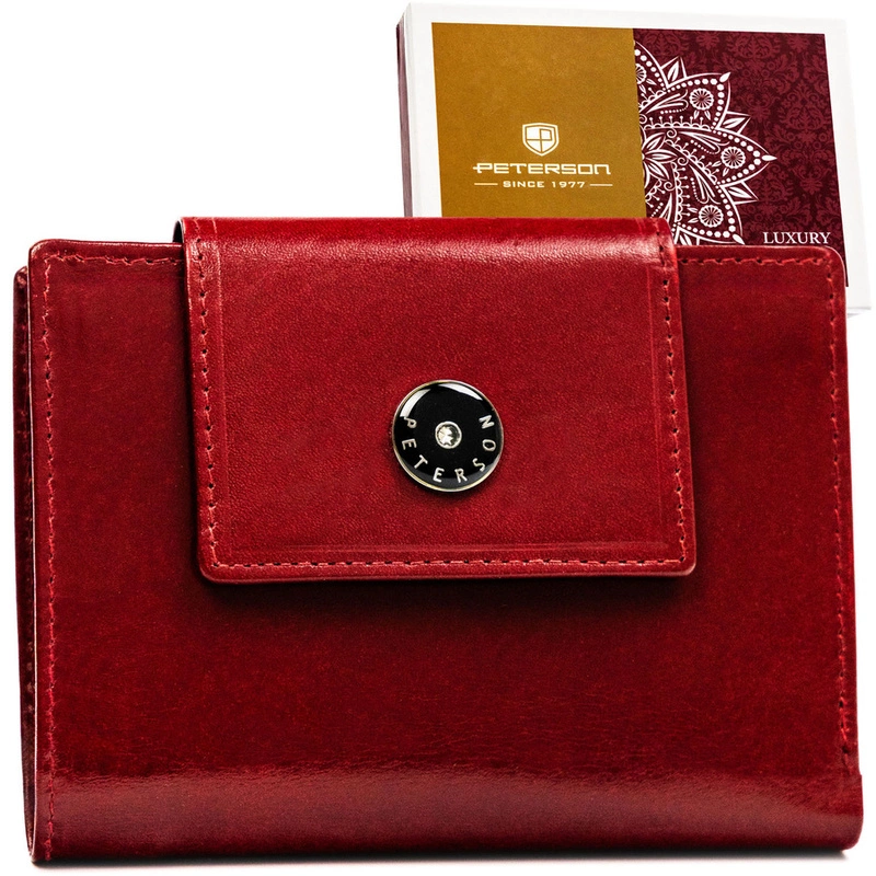 Skórzany, kompaktowy portfel damski w czerwonym kolorze - Peterson