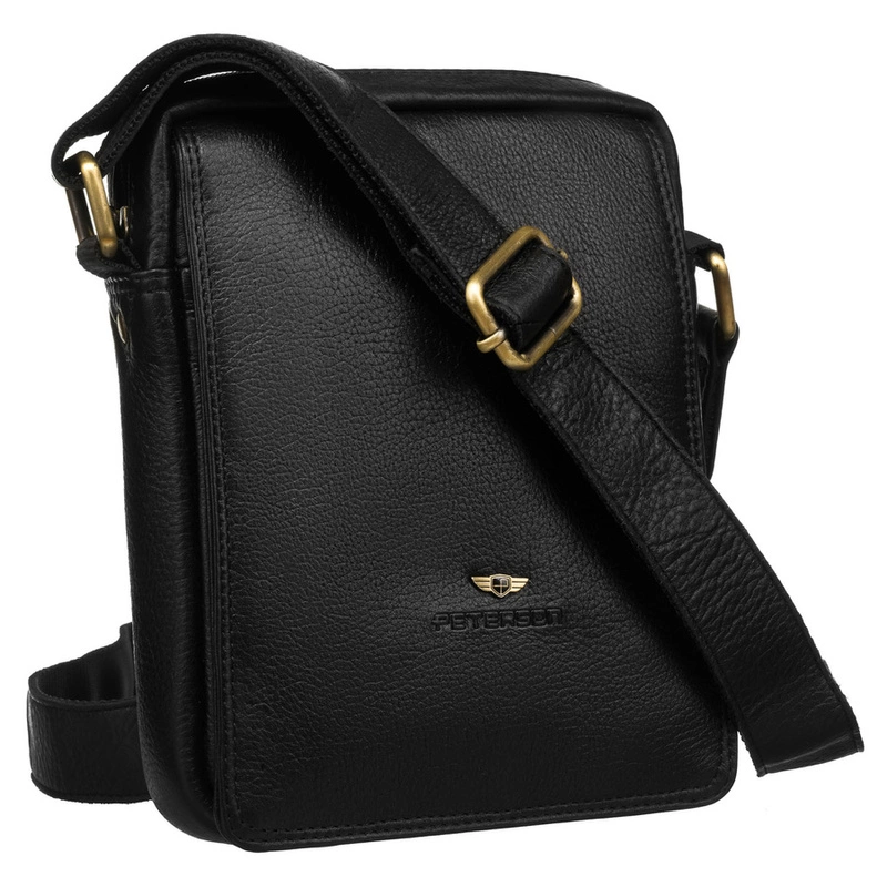 Czarna listonoszka męska ze skóry naturalnej ze złotymi okuciami - Peterson