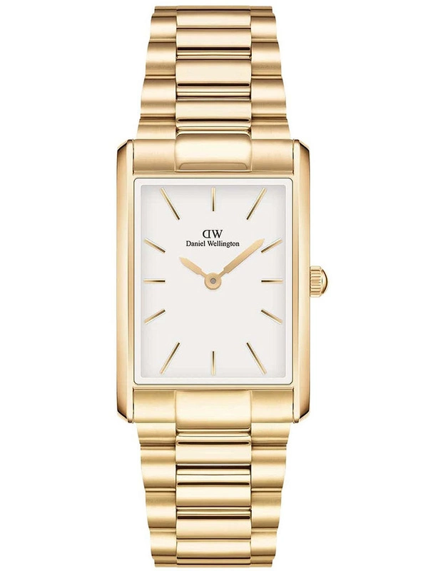 Daniel Wellington DW00100703 to stylowy damski zegarek, który wyróżnia się elegancką, prostokątną kopertą o delikatnie zaokrąglonych krawędziach oraz subtelną, trzyrzędową bransoletą, idealnie zintegrowaną z całością.