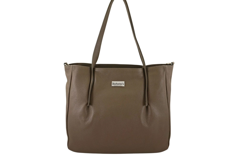 Shopperka damska skórzana Barberini's w kolorze ciemnego beżu jest wykonana ze skóry naturalnej licowej. Najmodniejsze torebki skórzane to bez wątpienia minimalistyczne modele, które okażą się prawdziwym hitem. Proste formy i stonowane kolory to propozycja dla kobiet ceniących ponadczasową elegancję. Modele o klasycznym kształcie, takie jak aktówki czy prostokątne torebki na ramię typu shopper, doskonale sprawdzą się zarówno w pracy, jak i podczas mniej formalnych wyjść. Te modele torebek idealnie pasują do stylizacji biznesowych, ale też casualowych — wystarczy dodać torebkę skórzaną z naszej kolekcji aby uzyskać elegancki, spójny look​. Posiadamy szeroki wybór produktów z najwyższej jakości skóry licowej lub zamszowej, z subtelnymi dodatkami, w szerokiej palecie kolorystycznej. Oferowane przez nas produkty zaprojektowano tak, aby mieściły potrzebne rzeczy do pracy np. dokumenty, notatki, organizer lub notebook. Poręczne wewnętrzne lub zewnętrzne kieszenie doskonale uporządkują drobne rzeczy, np. klucze, portfel, telefon oraz kosmetyki. W najnowszej kolekcji torebek klasycznych mieszczących format A4 - shopperka damska skórzana na wygodnej długości uchwytach, dostępna w odcieniach beżu, brązu oraz w czarnym kolorze.