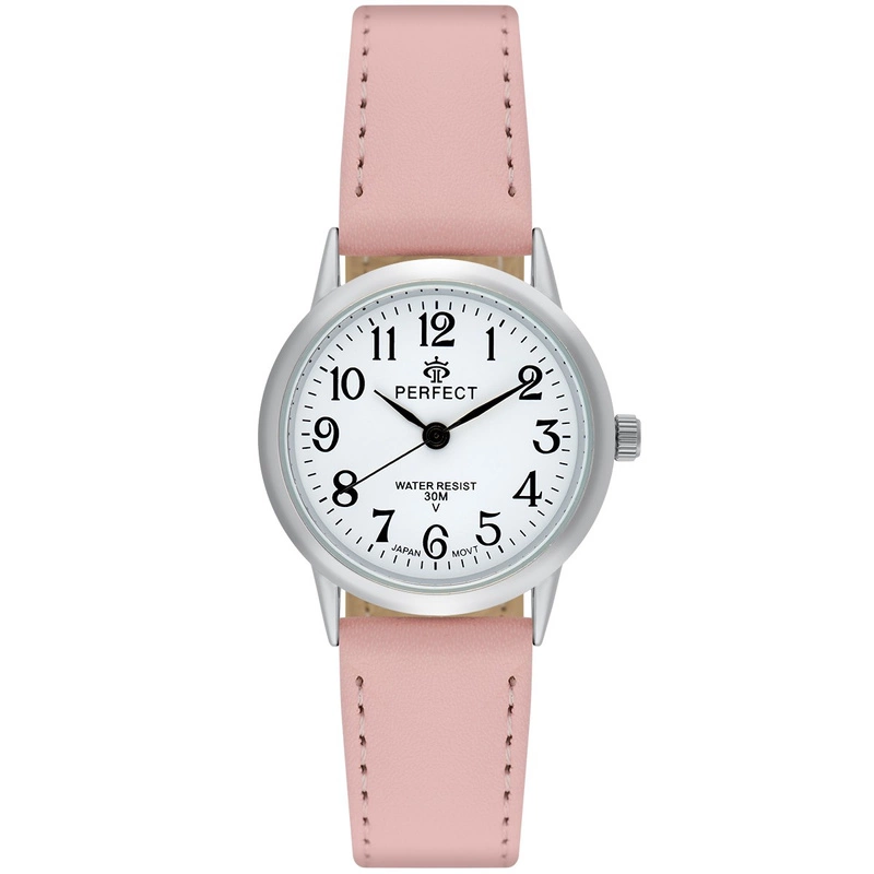 Klasyczny damski zegarek sprawdzonej marki Perfect na pięknym, jasno różowym pasku.