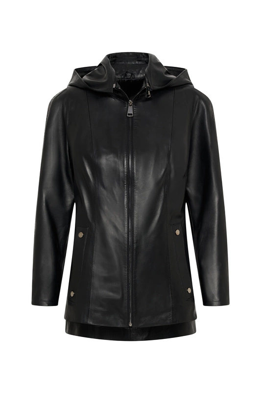 Kurtka skórzana damska "Mariola" zapinana na zamek z kapturem na suwak