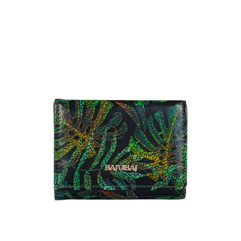 - Stylowy portfel damski BajuBaj z naturalnej zielonej skóry. Około 8 przegródek na karty, kieszeń na monety, zabezpieczenie RFID. Produkt najwyższej jakości.