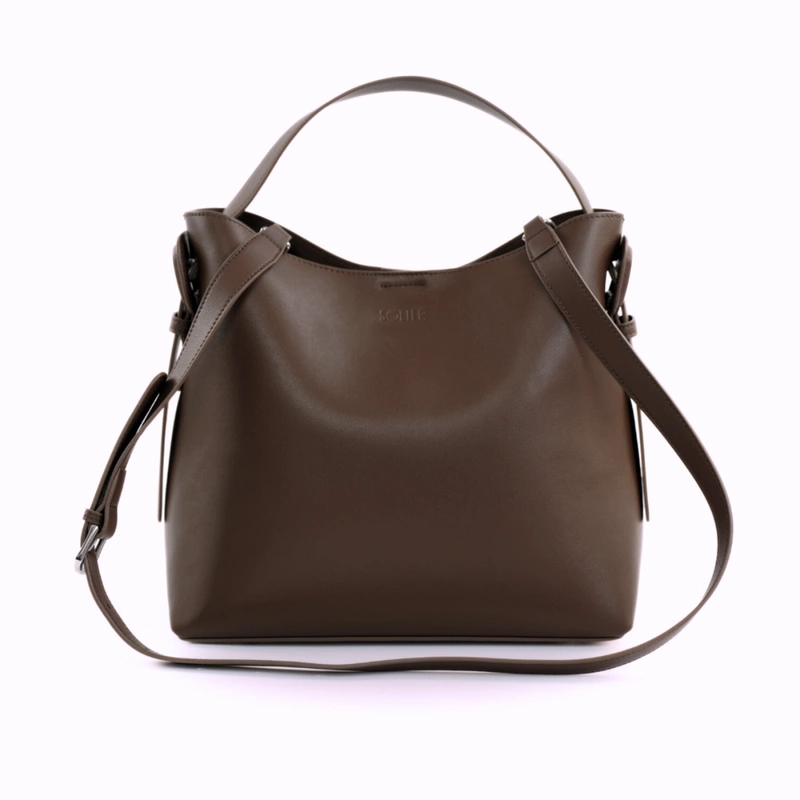 Skórzana torebka damska z klamrą Solier FL44 Elara ciemny brąz