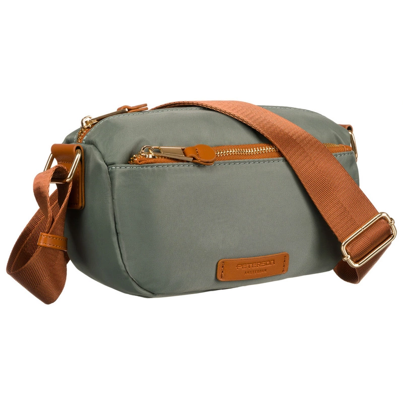 Nylonowa listonoszka damska w zielono-brązowym kolorze zawieszona na regulowanym pasku - Peterson