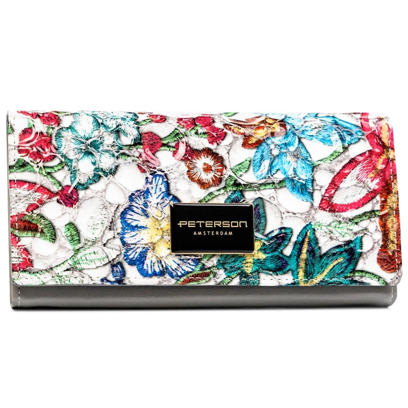 Damski portfel ze skóry naturalnej w kwiatowy wzór - Peterson