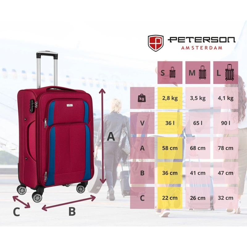 Walizka kabinowa z miękkiego materiału poliestrowego w czerwono-niebieskim kolorze - Peterson