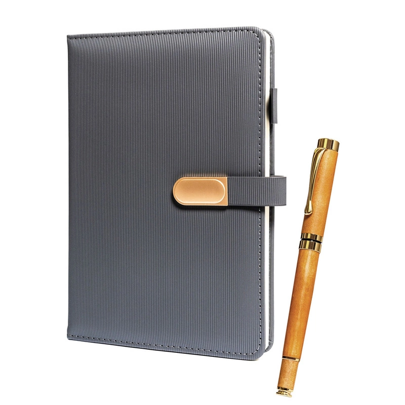 - Zestaw, który łączy elegancję z funkcjonalnością. Stylowy notes w formacie A5 oraz dopasowany długopis ze złotymi detalami to propozycja dla osób ceniących jakość i estetykę. Całość zapakowana jest w eleganckie firmowe pudełko.