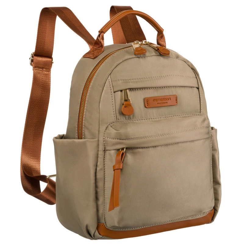 Praktyczny plecak miejski w kolorach khaki i brązowym, zamykany na suwak - Peterson