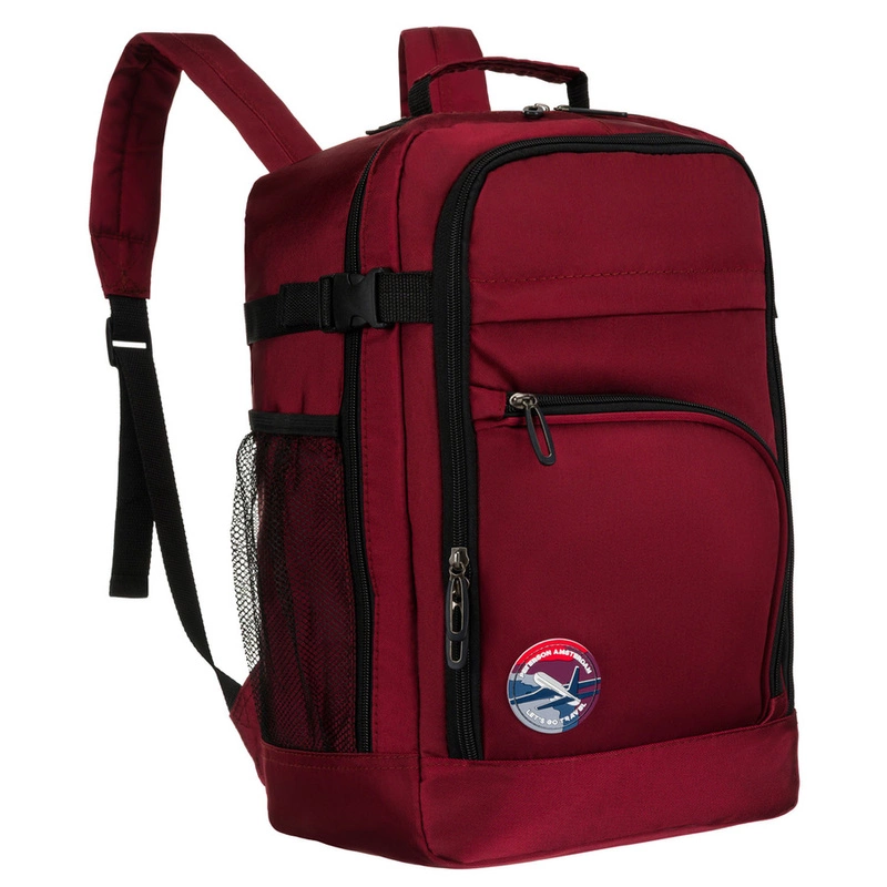 - Lekki i funkcjonalny plecak z poliestru. Zgodny z wymogami bagażu podręcznego w większości linii lotniczych. Zawieszony na regulowanych szelkach i wyposażony w pas do zaczepienia o rączkę walizki. Zamykany suwakiem. Dwukomorowy.