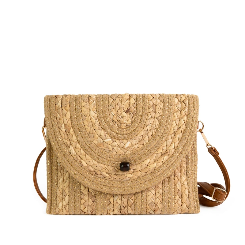 Mała torebka na lato wykonana z naturalnych materiałów.