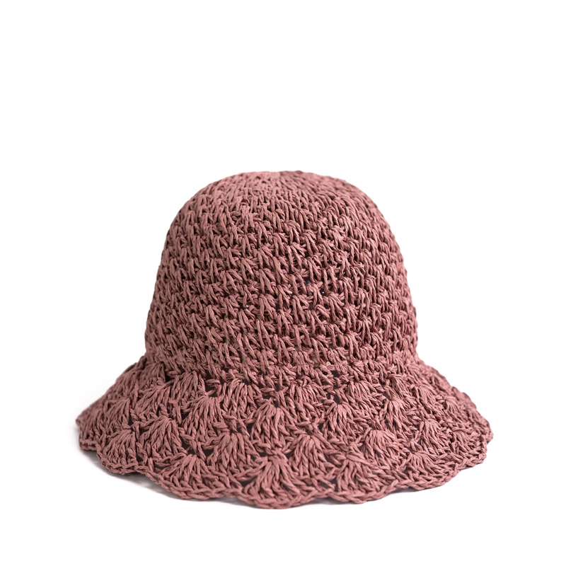 Letni, pleciony kapelusz typu bucket wykonany z trawy.