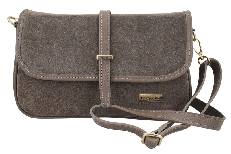 Zamszowa torebka damska Barberini's w kolorze ciemnego beżu została wykonana ze skóry naturalnej. W ofercie naszego sklepu znajdziesz wiele modeli funkcjonalnych torebek listonoszek, na długim regulowanym pasku, w szerokiej palecie kolorów, z delikatnymi złotymi lub srebrnymi ozdobami. Wszystkie harmonijnie dopełnią kobiecy look, stanowiąc jego praktyczny dodatek. Klasyczny fason torebki wyróżniający się łączeniem dwóch rodzajów skóry naturalnej oraz złote okucia wyróżniają ten model listonoszki, która podkreśli codzienne swobodne stylizacje do pracy, na zakupy, spacer lub krótki wyjazd. Dostępna w najnowszej kolekcji, w szerokiej palecie kolorów, zamszowa torebka damska Barberini's będzie idealna dla osób, którym zależy na stylowych i jednocześnie funkcjonalnych torebkach ze skóry naturalnej. Dzięki klasycznemu i stonowanemu wzornictwu dopasujesz torebkę zarówno do casualowych sukienek lub spodni dżinsowych. Zapoznaj się z najnowszą ofertą torebek skórzanych dostępnych w naszym sklepie - listonoszek, klasycznych lub wygodnych plecaków oraz portfeli. Oferujemy duży wybór produktów galanterii skórzanej Dla Niej i Dla Niego.