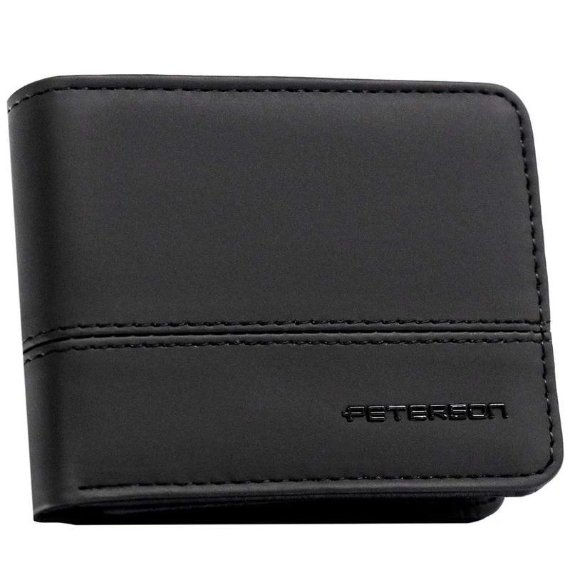 Czarny portfel męski w orientacji poziomej wykonany ze skóry ekologicznej - Peterson