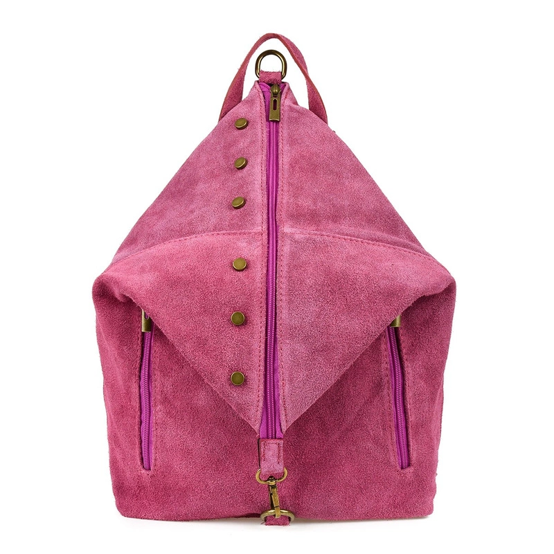 Włoski Stylowy Plecak Damski Skórzany Zamsz A4 purpurowy W14