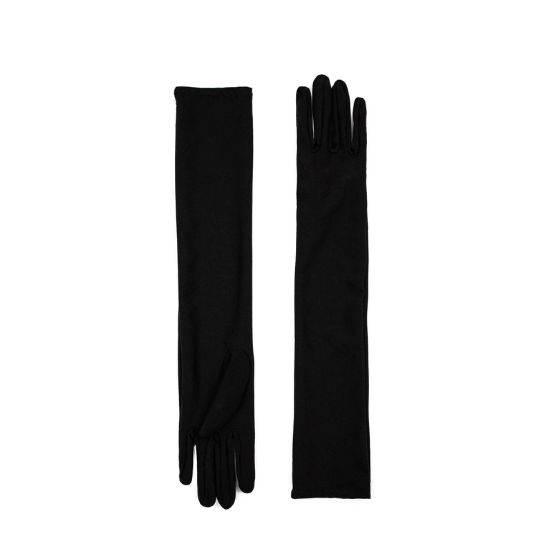Rękawiczki o przedłużonym fasonie, wykonane z gładkiej dzianiny.