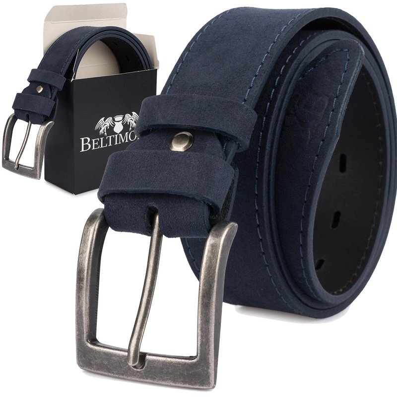 Pasek męski skórzany zamszowy skóra naturalna granatowy Beltimore W46 : Kolory - granatowy, Rozmiar pasków - r.85-100 cm