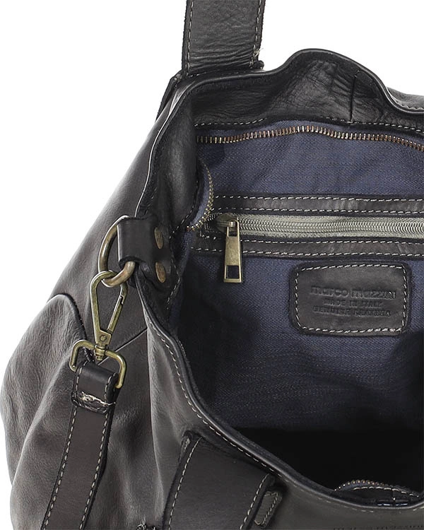 Ta torebka miejska skórzana została wykonana z wysokogatunkowej, miękkiej skóry naturalnej, która zapewnia wyjątkową wygodę i elastyczność w użytkowaniu. Jest to skóra bardzo solidna, wytrzymała na obciążenie oraz wyjątkowo miękka w dotyku. Torebka jest ręcznie szyta, a następnie W CAŁOŚCI poddawana procesom farbowania, starzenia i uszlachetniania. Skóra naturalna jest materiałem wyjątkowym! Ta wykorzystywana do produkcji toreb Marco Mazzini jest odzyskiwana z przemysłu spożywczego zgodnie z zasadami zero waste.