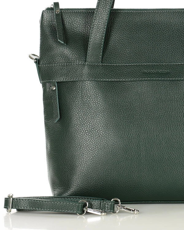 Prezentowana miejska torebka skórzana została wykonana z najwyższej jakości skóry bydlęcej, która charakteryzuje się nie tylko trwałością, ale także elegancją. Skóra, z której powstała nasza torebka, to solidna, mięsista skóra bydlęca o delikatnej strukturze. Jest ona odporna na zarysowania i działanie czynników atmosferycznych, co czyni ją idealnym wyborem na każdą pogodę.