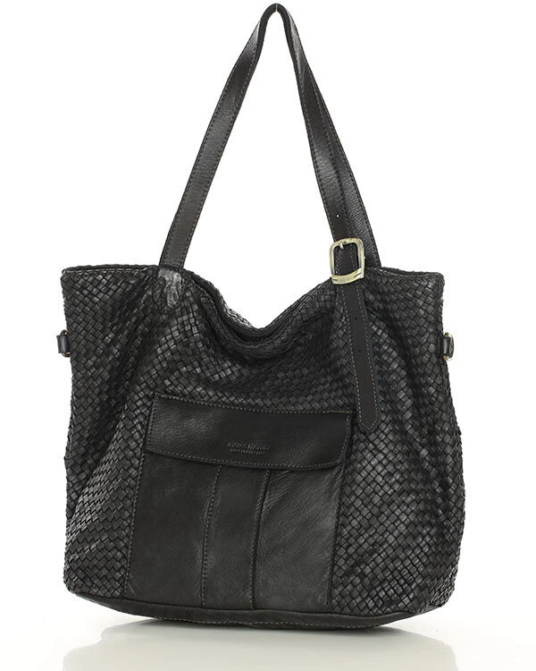 Duża torebka pleciona na ramię shopperka skórzana - MARCO MAZZINI czarna