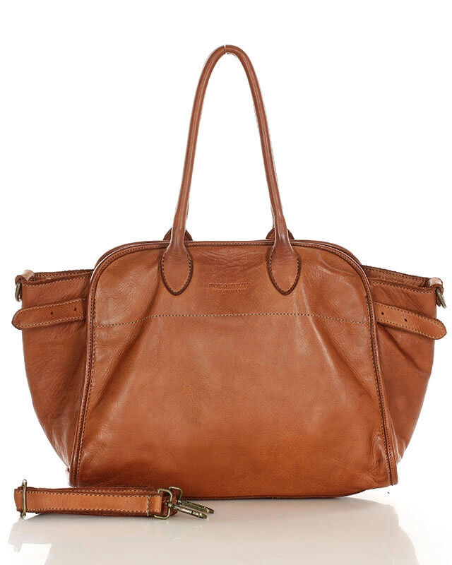 Kultowa torebka typu kuferek z włoskiej skóry naturalnej - MARCO MAZZINI brąz camel