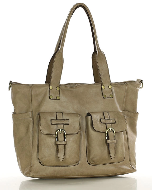 Torba skórzana shopper XL na ramię z dwoma kieszeniami MARCO MAZZINI beżowa