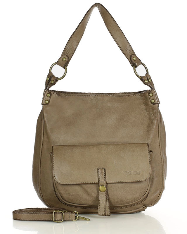 Torebka hobo Marco Mazzini wykonana jest z solidnej naturalnej skóry licowej. Ta skórzana torebka jest ręcznie szyta, a następnie w całości farbowana, starzona i poddawana procesom uszlachetniania skóry. Taki zabieg nadaje torebce wyjątkowego charakteru vintage oraz zapewnia, że skóra zostanie nieskazitelnie niezmienna
