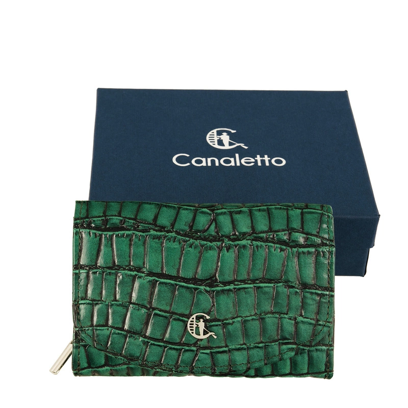 - Elegancki damski portfel ze skóry tłoczonej na wzór krokodyla. Styl, funkcjonalność i ochrona RFID w jednym – wybierz jakość od Canaletto.
