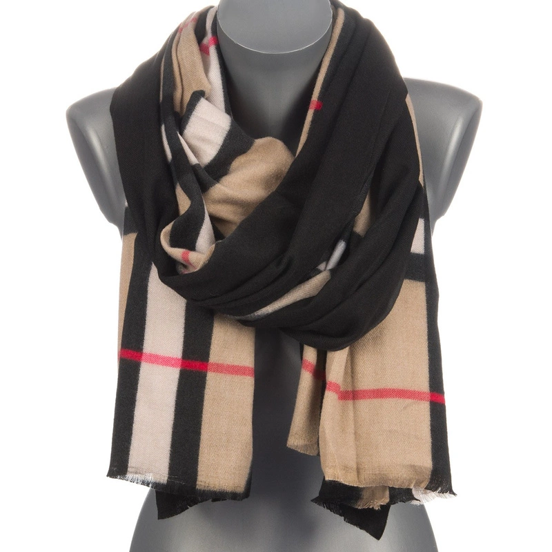 Beżowy Modny Szalik damski w kratę elegancki bawełniany duży szal ciepły AX-61