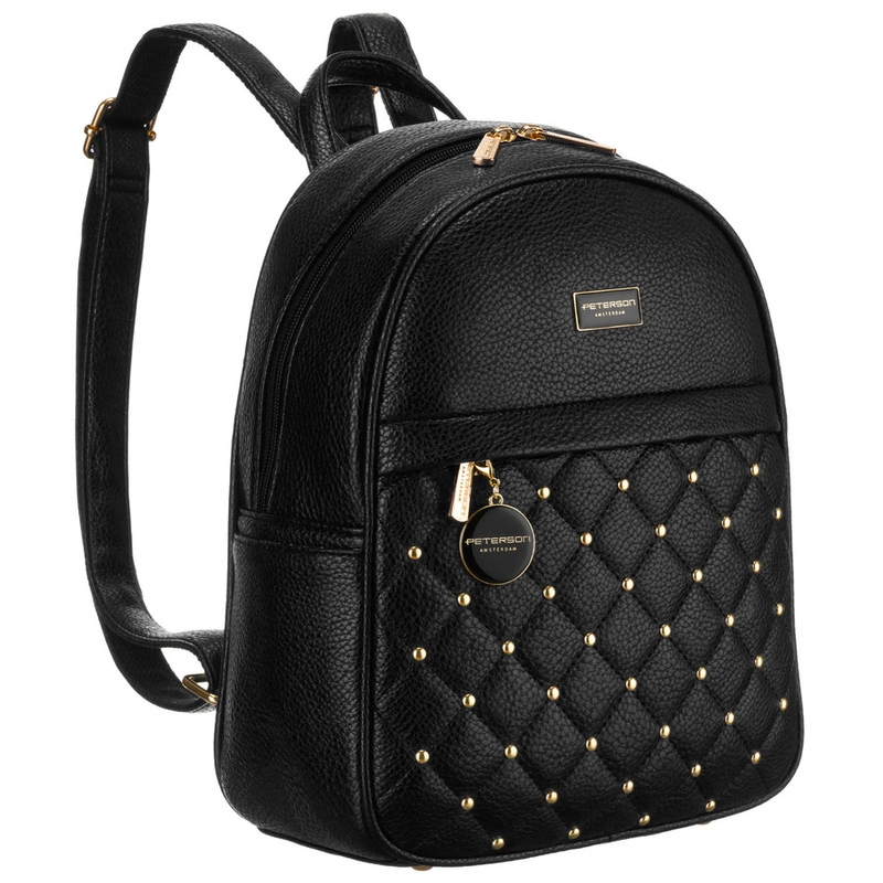 Mały pikowany modny czarny plecak damski z eko skóry Peterson