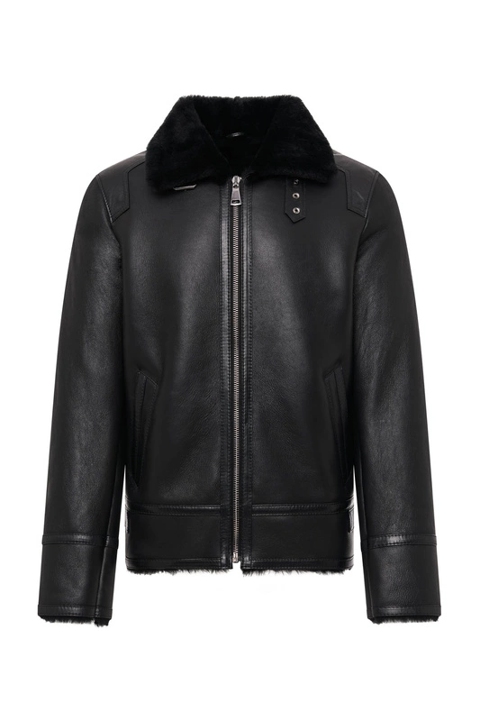 Ciepły Skórzany męski kożuch "Witold" kurtka zapinana na suwak Bukowski