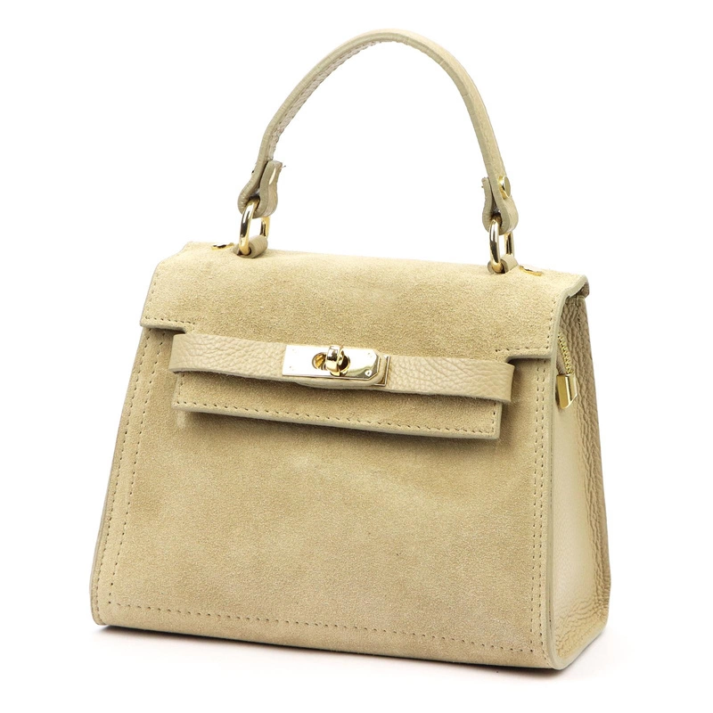 • Vera Pelle to połączenie klasyki i wyrafinowanego designu. Wykonana z naturalnej skóry zamszowej, zachwyca subtelną fakturą oraz starannym wykończeniem. Jej mały rozmiar czyni ją idealnym wyborem na co dzień, jak i na bardziej formalne okazje.