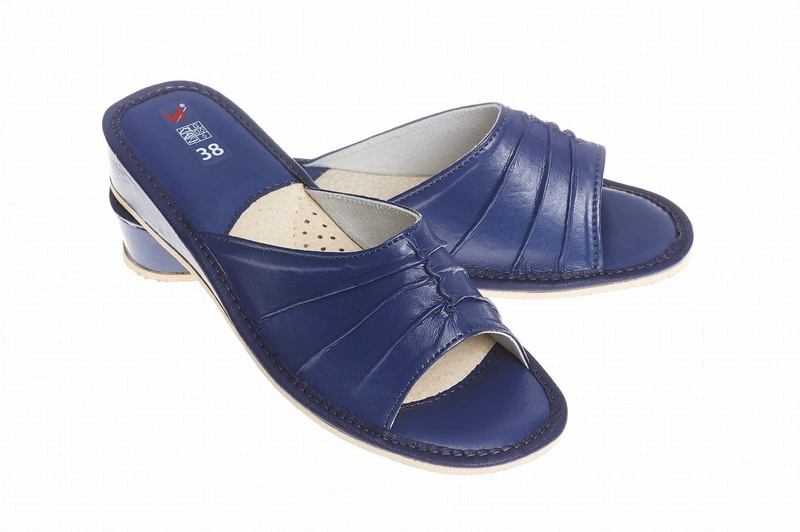 Pantofle damskie Wójciak, klin o wysokości 3,5 cm, wzór ręcznie robiony. Model 029