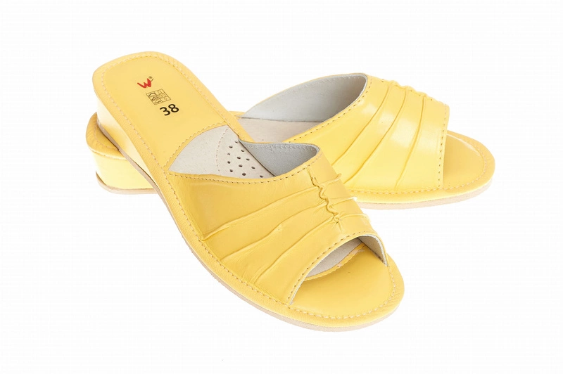 Pantofle damskie Wójciak, klin o wysokości 3,5 cm, wzór ręcznie robiony. Model 030