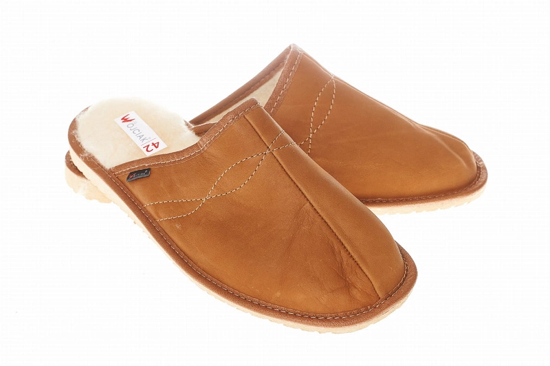 Zabudowane wygodne Męskie kapcie ze skóry naturalnej od Wójciak Podhale