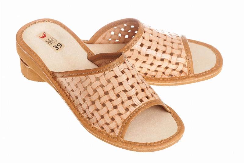 Wójciak Podhale damskie kapcie domowe skóra naturalna korek otwarty palec