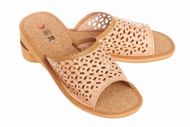 Wójciak Podhale damskie kapcie domowe skóra naturalna korek otwarty palec