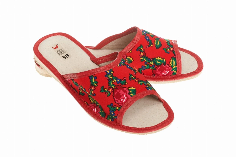 Wygodne damskie niskie kapcie z motywem góralskim kwiatowym Wójciak Podhale