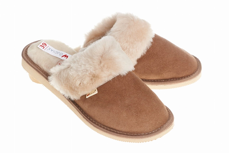 Wójciak Podhale damskie kapcie domowe skórzane zabudowane wełniane wnętrze