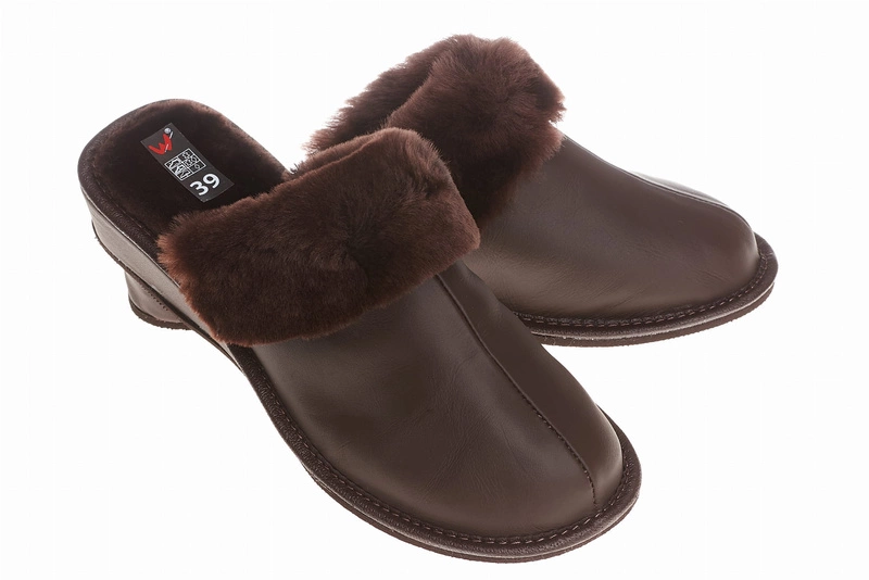 Wójciak damskie kapcie skóra naturalna zabudowane klin o wysokości 3,5 cm